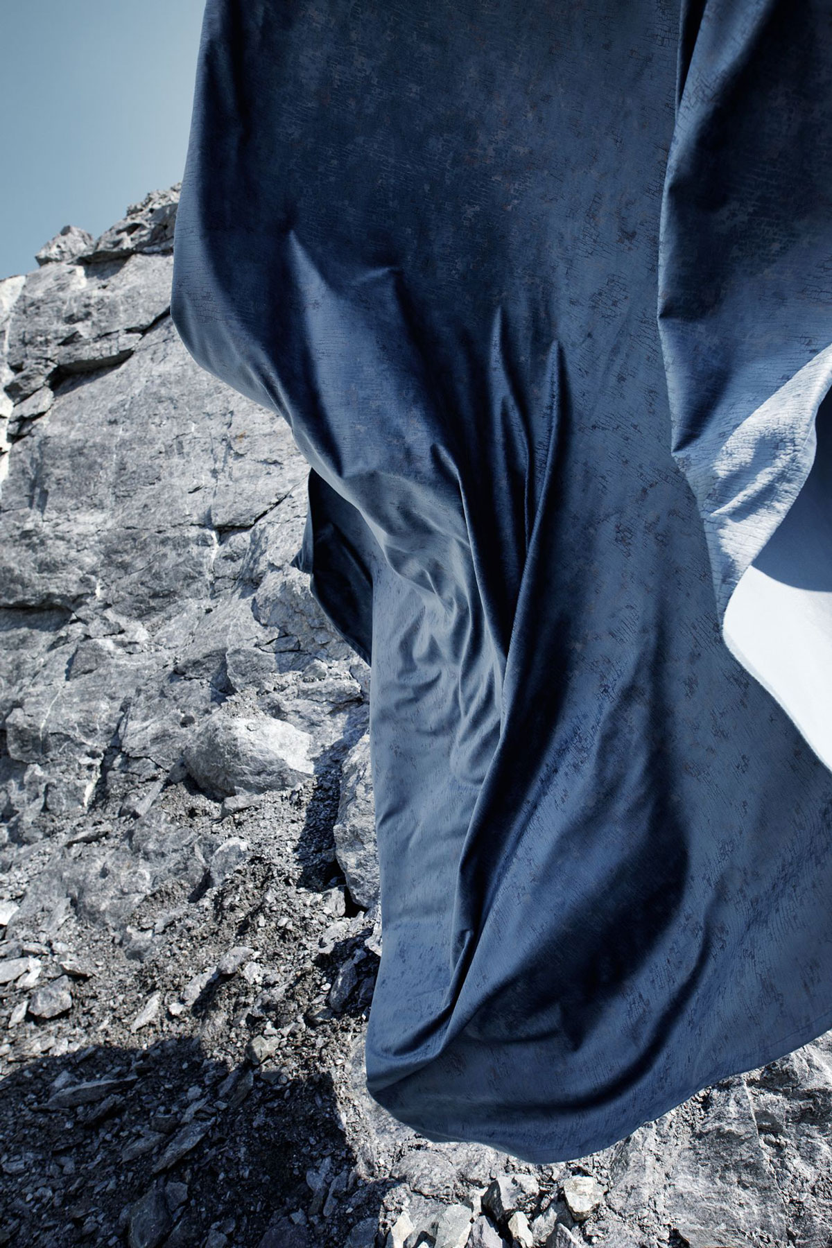 It has a velvety and shiny material with an abstract pattern. It is suitable for modern-style design concepts.