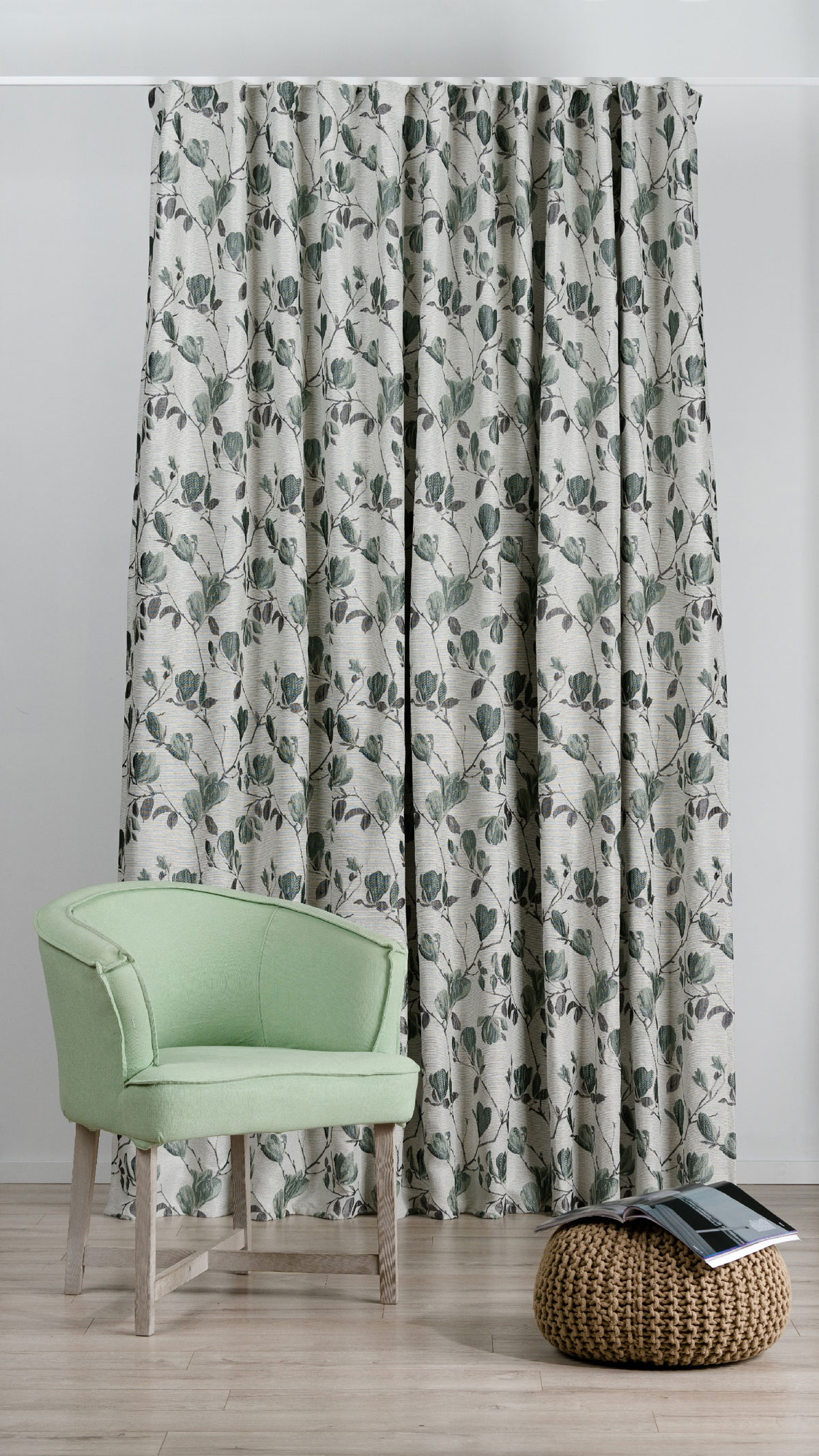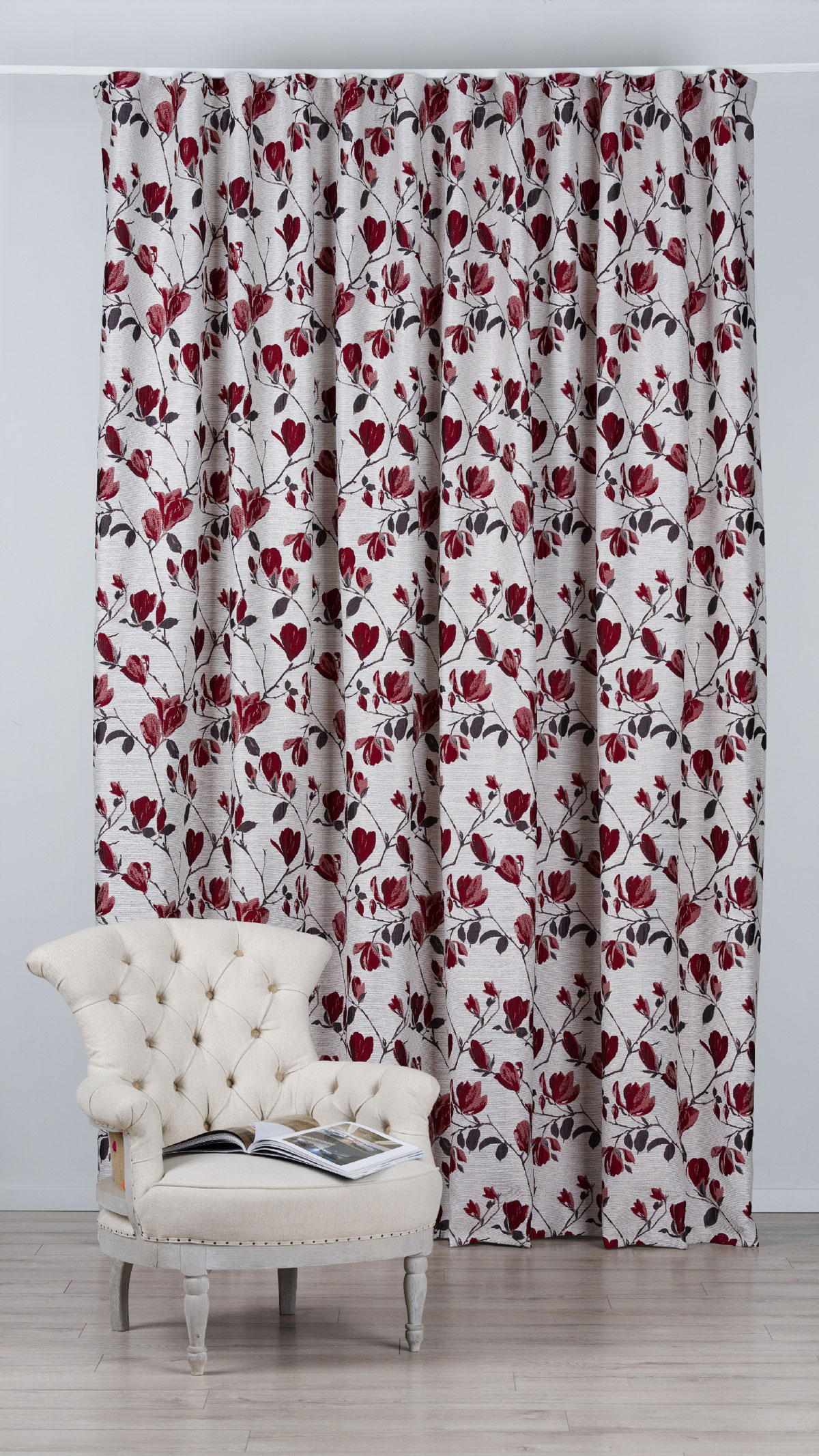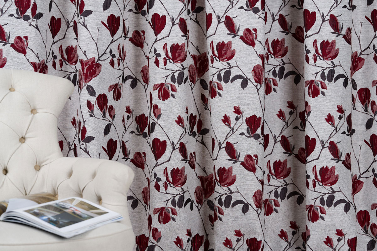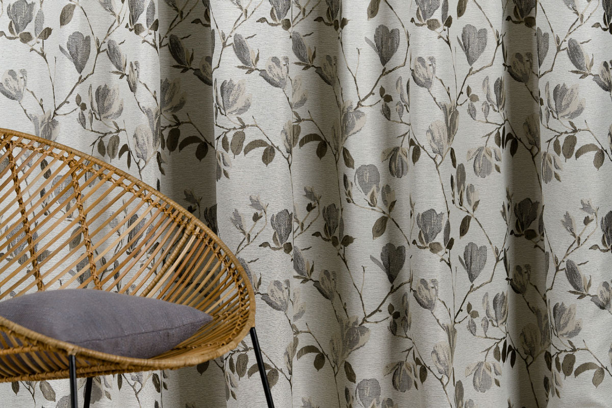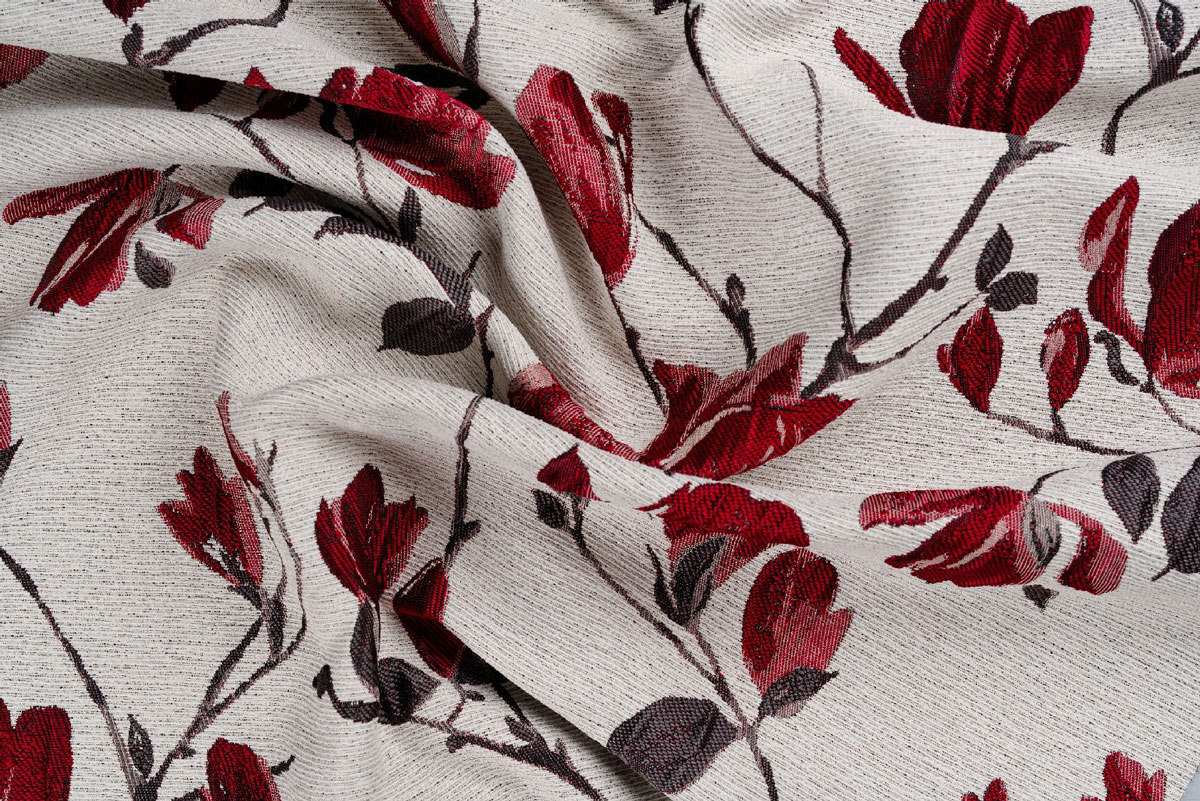 The Rochelle design, with its contrasting or pastel Magnolias, exudes delicacy and elegance. The flower pattern runs vertically across the cloth, giving the design a consistent and balanced appearance.