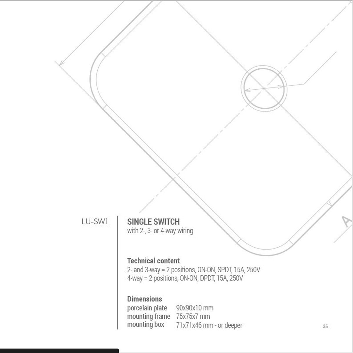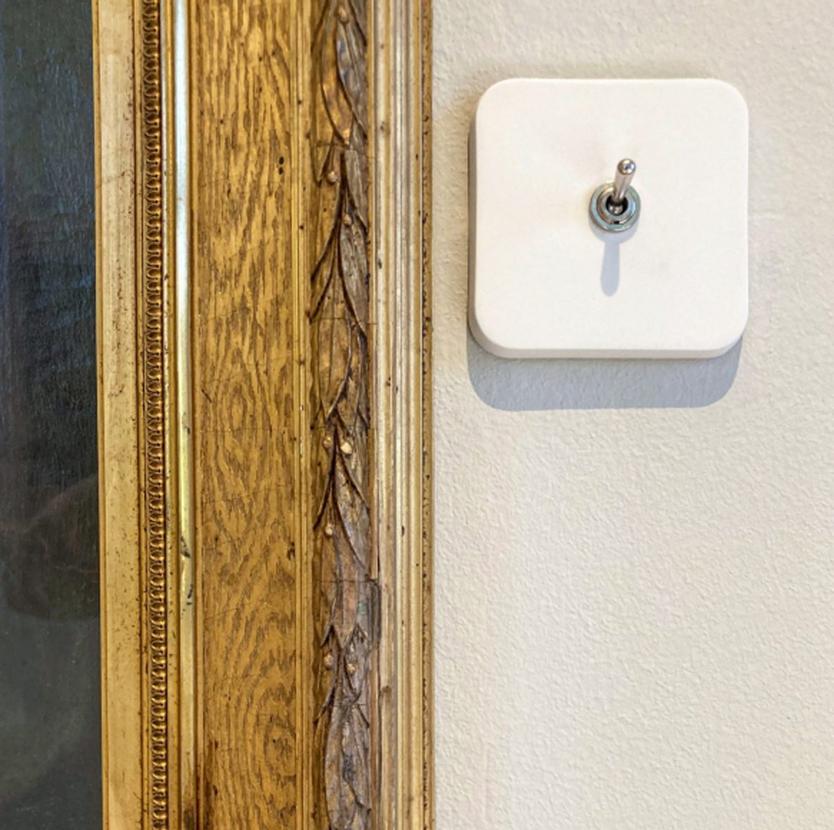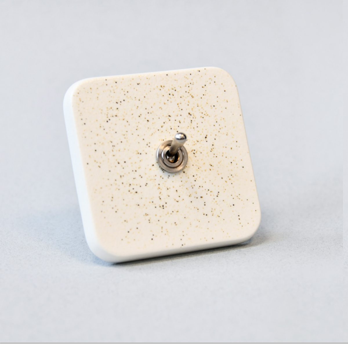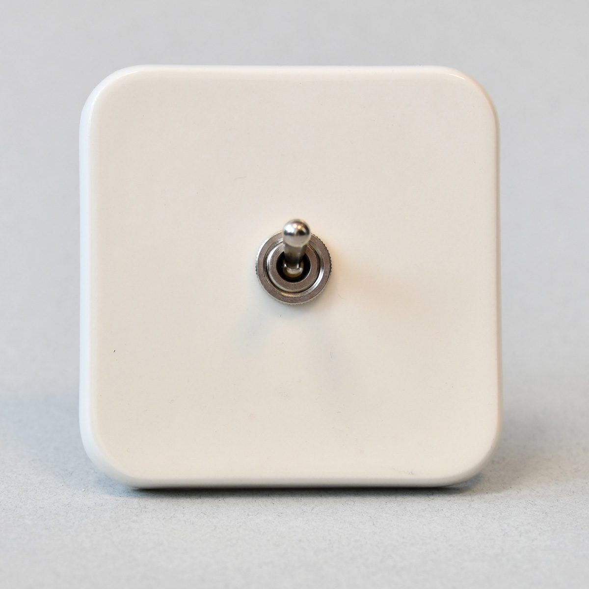 Single porcelain light switch crafted by hand. It is the ideal finishing touch to give your house personality. made from porcelain, the ceramic material that is both the strongest and the most delicate. After being cast in custom-made plaster molds, porcelain is burned twice, once at a temperature just below 1000 °C and once at 1250 °C after glazing.