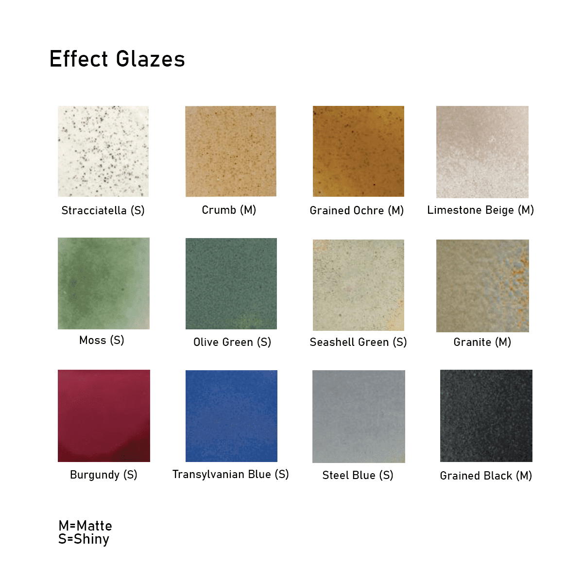 | Porcelain colors | Straciatella, Crumb, Grained Ochre, Limestone Beige, Moss, Olive Green, Seashell Green, Granite, Burgundy, Transylvanian Blue, Steel Blue, Grained Black |