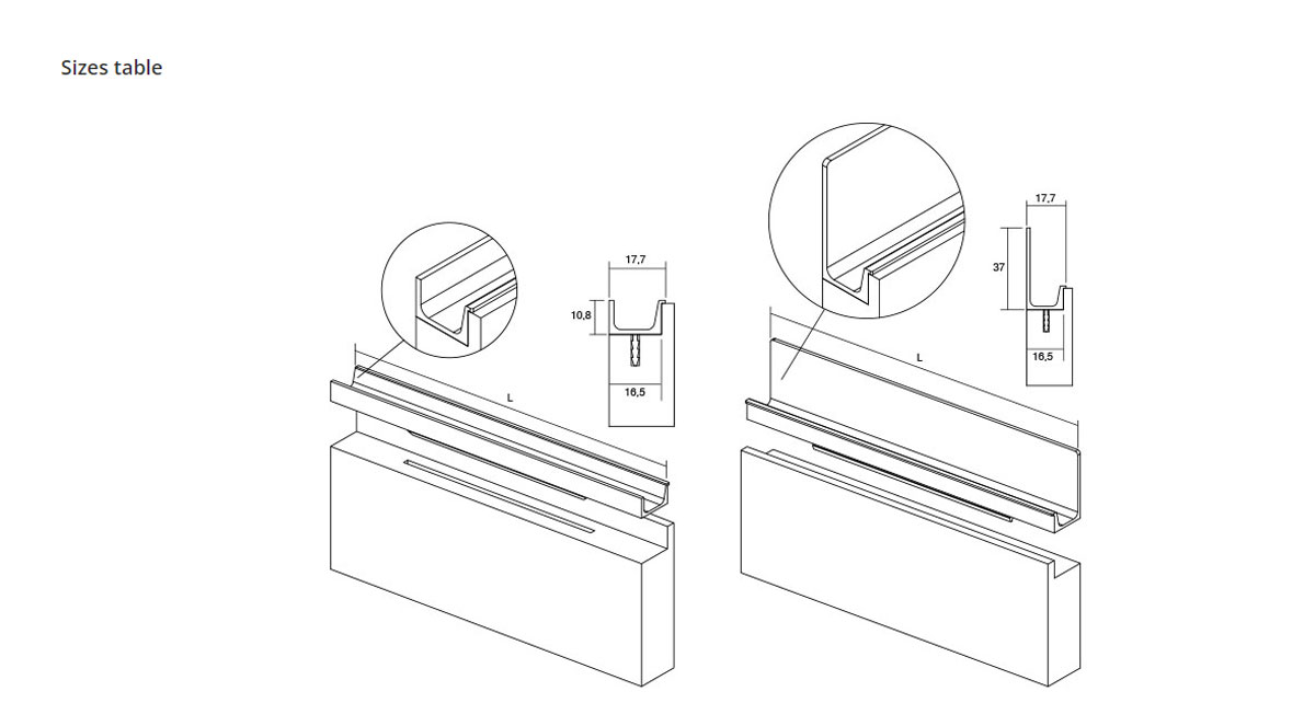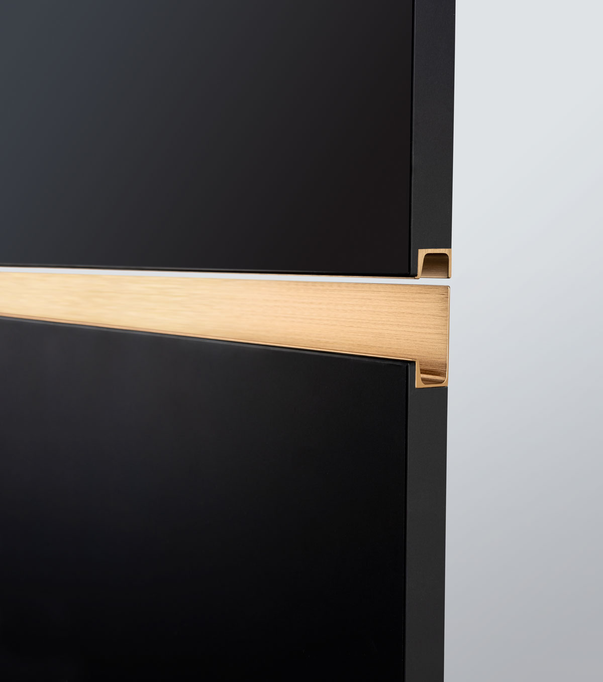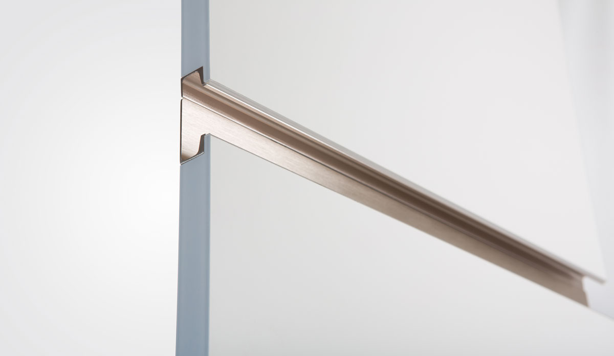 Jey2 is a functional handle constructed of aluminum profile with a stainless steel finish that is designed to be installed on furniture edges. It’s the best option for doors with a thickness of 18mm or greater. Its simple design complements the Jey model wonderfully.