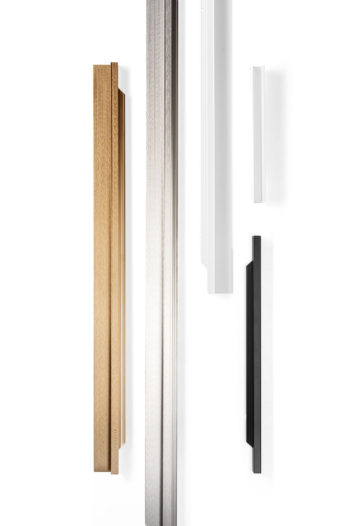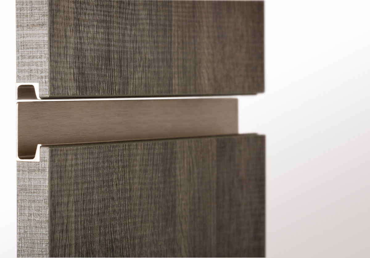 The Jey handle adds a touch of sophistication and functionality to doors (with a minimum thickness of 18mm). Its back section is visible in an aluminum profile with a stainless steel finish, and it embellishes the lines of all types of wooden furniture, as well as Formica or varnished furniture. Jey is soft to the touch and attractive to the eye. Combines with the Jey2 model.