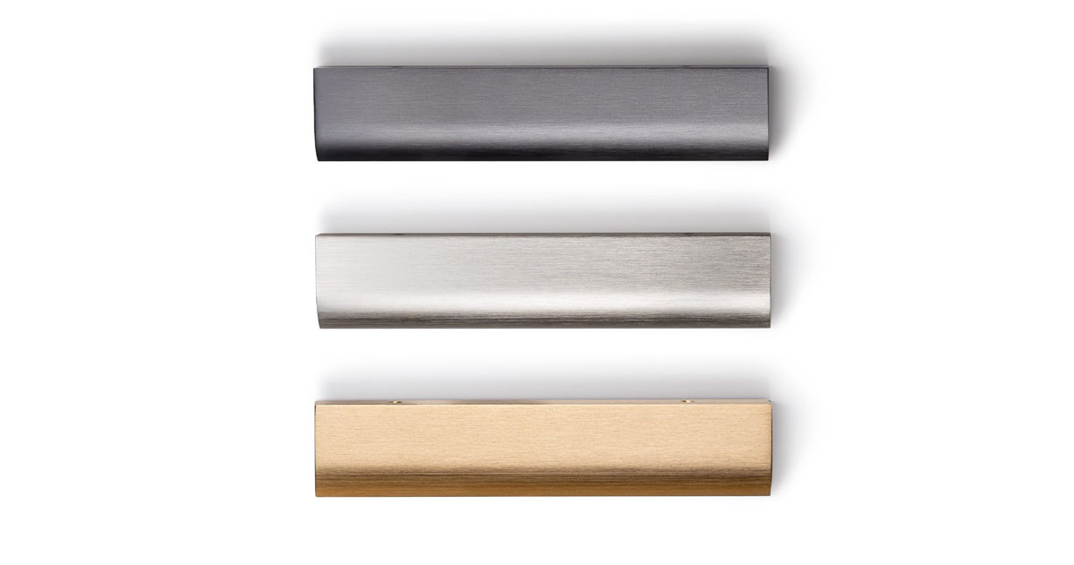 The Ona is a comfortable, sleek aluminium profile handle with a form that offers a firm grip and makes it simple to use. The profile is an integrated element that is simple to install since it is bolted on from the back, allowing it to adjust to varied furniture widths. It’s perfect for pillars and kitchen islands. Available in stainless steel, brushed black, brushed grey anthracite, matt white, and trendy colors including metallic grey, metallic brown, and brushed dark brass.